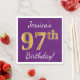This simple paper napkin design features a message like "Jessica’s 97th Birthday!", with the "97th" having a faux gold-like appearance, on a purple coloured background. The name can be personalised. It could be used at a birthday party for somebody who is celebrating their ninety seventh birthday. [~Z0000085]