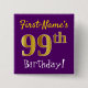 Purple, Faux Gold 99th Birthday, With Custom Name 15 Cm Square Badge