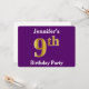 Purple, Faux Gold 9th Birthday Party + Custom Name Invitation