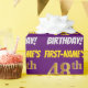 This wrapping paper design features a message like "FIRST-NAME’S 48th BIRTHDAY!", with the "48th" having a faux/imitation gold-like colour appearance, and with the name and "BIRTHDAY" in a fun, bold font. The name can be personalised, and the background is coloured purple. Wrapping paper like this could perhaps be used when wrapping birthday gifts being given to somebody in celebration of their forty eighth birthday. [~Z0000206]
