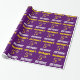 This wrapping paper design features a message like "FIRSTNAME’S 5th BIRTHDAY!", with the "5th" having a faux/imitation gold-like colour appearance, and with the name and "BIRTHDAY" in a fun, bold font. The name can be customised, and the background is coloured purple. Wrapping paper like this could perhaps be used when wrapping birthday gifts being given to somebody in celebration of their fifth birthday. [~Z0000206]