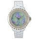 PURPLE FLEUR DE LIS ,GREEN LEAVES AQUA BLUE FLORAL WATCH