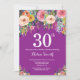 Purple Floral 30th Birthday Invitation for Women. Watercolor Floral Flower. Purple Lilac Lavender Violet Background. Pink, Yellow, Orange, Purple Flower. Adult Birthday. For further customisation, please click the "Customise it" button and use our design tool to modify this template.