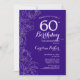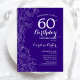 Purple Floral 60th Birthday Party Invitation. Minimalist modern design featuring botanical outline drawings accents and typography script font. Simple trendy invite card perfect for a stylish female bday celebration. Can be customised to any age. Printed Zazzle invitations or instant download digital printable template.