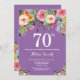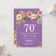 Purple Floral 70th Birthday Invitation for Women. Watercolor Floral Flower. Purple Lilac Lavender Violet Background. Pink, Yellow, Orange, Purple Flower. Adult Birthday. 13th 15th 16th 18th 20th 21st 30th 40th 50th 60th 70th 80th 90th 100th, Any Ages. For further customisation, please click the "Customise it" button and use our design tool to modify this template.