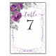 Beautiful purple floral wedding table number with bouquets of watercolor roses and flowers. The design features elegant handwritten script, pretty purple and magenta floral arrangements, grey green leaves and foliage and a dash of purple and gold confetti. Please browse my Plush Purple Floral collection for matching items or message me to create any additional designs you need.