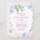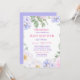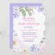 Purple Flowers Baby Shower Invitation. This elegant invitation is surrounded with pretty purple, pink, and white flowers. Add your party details to see what your invitation will look like before purchase. Our template makes it easy to change the wording for your baby shower.
