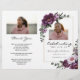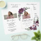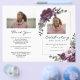 Elegant purple floral bi-fold funeral program featuring peony flowers, soft greenery, and a customizable photo cover. This celebration of life memorial service booklet is perfect for honoring a loved one with a beautiful, timeless tribute. Personalize with name, dates, photo, and service details to create a meaningful keepsake for family and friends.