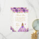 This elegant and glamourous birthday thank you card features a beautiful princess with blonde hair and fair skin in a purple ball gown. The text combines handwritten script and modern sans serif fonts for a classy and sophisticated look. The floral arrangements, butterflies and gold confetti create the perfect blend of rustic and chic.