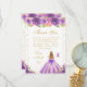 This elegant and glamorous birthday thank you card features a beautiful princess with blonde hair and fair skin in a purple ball gown. The text combines handwritten script and modern sans serif fonts for a classy and sophisticated look. The floral arrangements, butterflies and gold confetti create the perfect blend of rustic and chic.