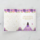 This elegant and glamourous sweet sixteen birthday card can be personalised with a name or title such as daughter, granddaughter, niece, friend etc. The design features a beautiful princess with dark hair and dark skin in a purple ball gown. The text combines handwritten script and modern sans serif fonts for a classy and sophisticated look. The floral arrangements, butterflies and gold confetti create the perfect blend of rustic and chic.