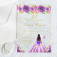 Purple Floral Dark Skin Princess Birthday Party Acrylic Invitations
