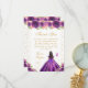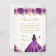 This elegant and glamourous birthday thank you card features a beautiful princess with dark hair and dark skin in a dark purple ball gown. The text combines handwritten script and modern sans serif fonts for a classy and sophisticated look. The floral arrangements, butterflies and gold confetti create the perfect blend of rustic and chic.