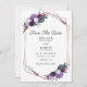 Save the Date Purple Floral geometric frame for your special day announcement card. This is part of the purple wedding and bridal shower collection with this design if you're one that loves to match your invitations, party supplies and gift accessories.