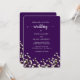 This sophisticated wedding invitation features a rich purple background with elegant white florals along the bottom for a refined and romantic atmosphere. The script and serif typography blend beautifully to highlight the couple’s names and important details. Perfect for evening weddings, chic bridal themes, and purple color palettes with a modern touch.