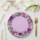 Design features purple watercolor flowers at the left bottom corner and white background. Easily customise with clicking button 'PERSONALIZE' that gives you the paper plate automatically for your purpose.