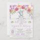 Purple Floral Elephant Baby Girl Shower Invitation