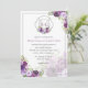Gorgeous bouquet of purple water colour flowers with fire department monogram and elegant formal script text. Firefighter, fireman inspired wedding invitation with a beautiful classic style.