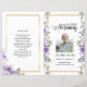 Beautiful and professional Funeral Program template with Purple floral Bakcground, easy to edit and print.