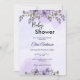 This beautiful invitation features watercolor purple floral background. The back of the card is watercolor purple flowers.
