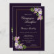 Purple Floral Gold Border Champagne Breakfast Invitation