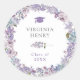 Purple Floral Graduate Sticker. Add personalised elegance to your graduation favours with this modern rustic sticker, designed with watercolor lilacs, lavender roses, and blue wildflowers. Customise the graduate’s name, class year, font styles, colours, and sizes for a unique touch.
