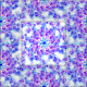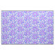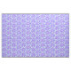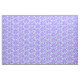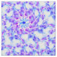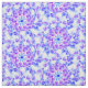This fabric design features a repeating geometric abstract pattern of a luminous floral purple, lilac and magenta mandala flower. The colours swirl around a central blue star.