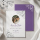 Announce your wedding in style with this elegant purple floral Save the Date card featuring a photo, modern script typography, and delicate line-art florals. The clean layout highlights your picture beautifully, while the purple border and floral corner add a romantic, timeless touch.