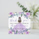 Add a whimsical and elegant touch to your Quinceañera with this beautifully designed square thank you card. Featuring a charming floral theme, the front showcases a mix of delicate purple and white flowers, including roses and other blooms, accented by lush green leaves. The combination of deep violet, soft lilac, and crisp white creates a fresh and enchanting look. In the background, a girl in a faux glitter purple dress and tiara crown adds a regal and celebratory feel.