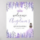 Tiara Watercolor Floral Purple Quinceañera Welcome Sign. This charming sign features a whimsical lilac and lavender garden theme, perfect for welcoming guests to your special day. The design showcases lavender stems in varying purple hues with green leaves, complemented by a sparkling purple tiara. "Welcome" is displayed in a mix of classic serif and elegant script fonts, creating a delightful blend of fun and sophistication.