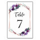 Purple Floral Rose Gold Geometric Wedding Table Number