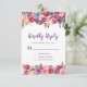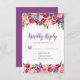 Beautiful purple and pink flowers, with a hint of blue create beautiful floral borders along the top and bottom of this RSVP card. Kindly Reply is written in large purple script letters. The back of the invitation is a deep purple. This can be changed to any colour to match your wedding décor. The text colour, size and font can also be customised.