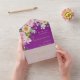 Purple Floral RSVP Trifold Event Invitation. This is an elegant and charming invitation with a perforated RSVP card will make it easy for your guests to RSVP to your amazing celebration! Your guests can tear the card at the perforated line, fill out the information, stamp it and drop it in their outgoing mail box! Matching items are also available at our store.