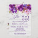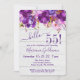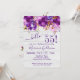 Purple floral rustic 55th birthday party invitation - 'hello 55!' with white barn wood background and beautiful print that you can customise with all of your birthday party information. with periwinkle purple colours and beautiful print that you can customise with all of your birthday party information.