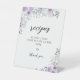 Elegant boho chic style bridal shower sign featuring a sweet light purple and lilac flower bloom intertwined with eucalyptus leaves and a sweet message inviting guests to share their favorite recipes for the bride-to-be. This modern design adds a refined touch to your celebration and is perfect for bridal shower decor, recipe card table signs, coquette bridal shower themes, minimalist bridal shower signage and bohemian bridal celebrations.