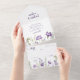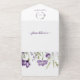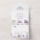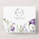 All in One Wedding Invitation: This purple floral wedding invitation has the invitation and rsvp in a nice folded set. The design features purple and lavender boho wildflowers with sage grass mixed in.