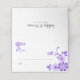 Elegant ultra violet floral wedding place card personalised with bride and groom's names on back