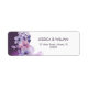 An elegant purple floral wedding return address label featuring soft watercolor flowers in lavender, blush, and white, paired with a deep plum side panel for a refined and romantic look. This pretty address sticker is perfect for wedding invitations, RSVP envelopes, save the date mailings, thank you cards, and coordinated wedding stationery suites. A beautiful choice for couples who love feminine floral details and sophisticated purple wedding designs.