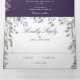 AN elegant all in one tri-fold wedding invitation featuring your special photo, monogram initials, and a cascade of wildflowers floral foliage enclosing your wedding details on a purple background. The invitation includes your celebration guest information details and a detachable RSVP card. Designed by Thisisnotme©