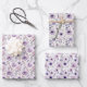 Purple Floral Wrapping Paper Flat Sheet Set of 3