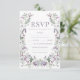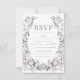 Purple floral wreath bohemian wedding RSVP card