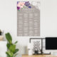 This purple flowers and lace alphabetical seating chart poster is perfect for a country wedding. This sign can be used to organise your guests alphabetically or by table number. The rustic chic design features a beautiful arrangement of plum purple, lilac and blush pink flowers with white floral lace on an elegant linen background. This wedding poster includes enough room for up to about 120 guests. Make room for more (or less) guests by clicking the "customise" button and decrease or increase the size of the font. In addition to the placement of each guest, personalise this sign with the names of the bride and groom and the wedding date.