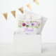 This beautiful and elegant birthday favor bag features watercolor purple flowers and foliage. The text combines handwritten script and serif fonts for a stylish and modern look. This is perfect for a spring rustic birthday.