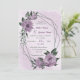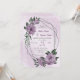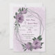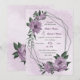 Unique wedding invitation featuring romantic dusty purple flowers and green leaves on a beautiful geometric frame.