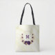 purple flowers gold leaves marble tote bag