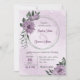 Unique wedding invitation featuring romantic dusty purple flowers and green leaves.