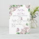 dreamy romantic purple flowers and green leaves with beautiful butterflies botanical wedding invitation