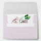 purple flowers green leaves wedding envelope with return address.