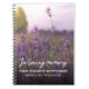 Beautiful memorial service guest book featuring a tranquil photo of purple flowers on a meadow.