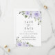 Invite friends and family in style and set the tone for your special day with this charming save the date card. Design features purple watercolor flowers and greenery on white background.